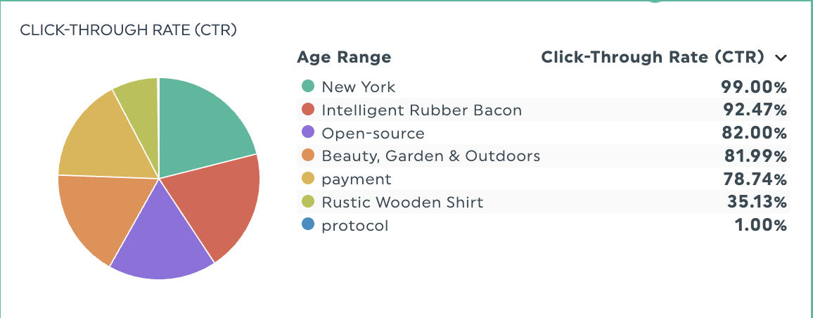 Alternatively, pie charts work well for breaking down aggregate metrics into categories. They’re useful for segmenting email lists into distinct audience groups or analyzing click-through rates across age ranges.