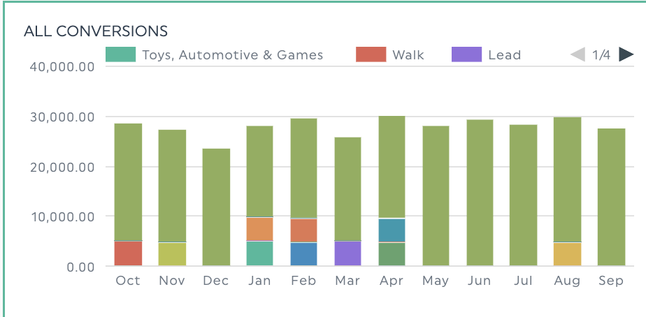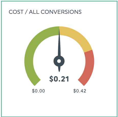 For goal-focused types of variables that require close monitoring, gauge widgets help track your progress. They work well to show how close you are to hitting key targets - whether you’re tracking cost-per-conversion or revenue goals. These widgets also help provide color-coded visual context - you’ll immediately know if you’re on track with your goals or not.