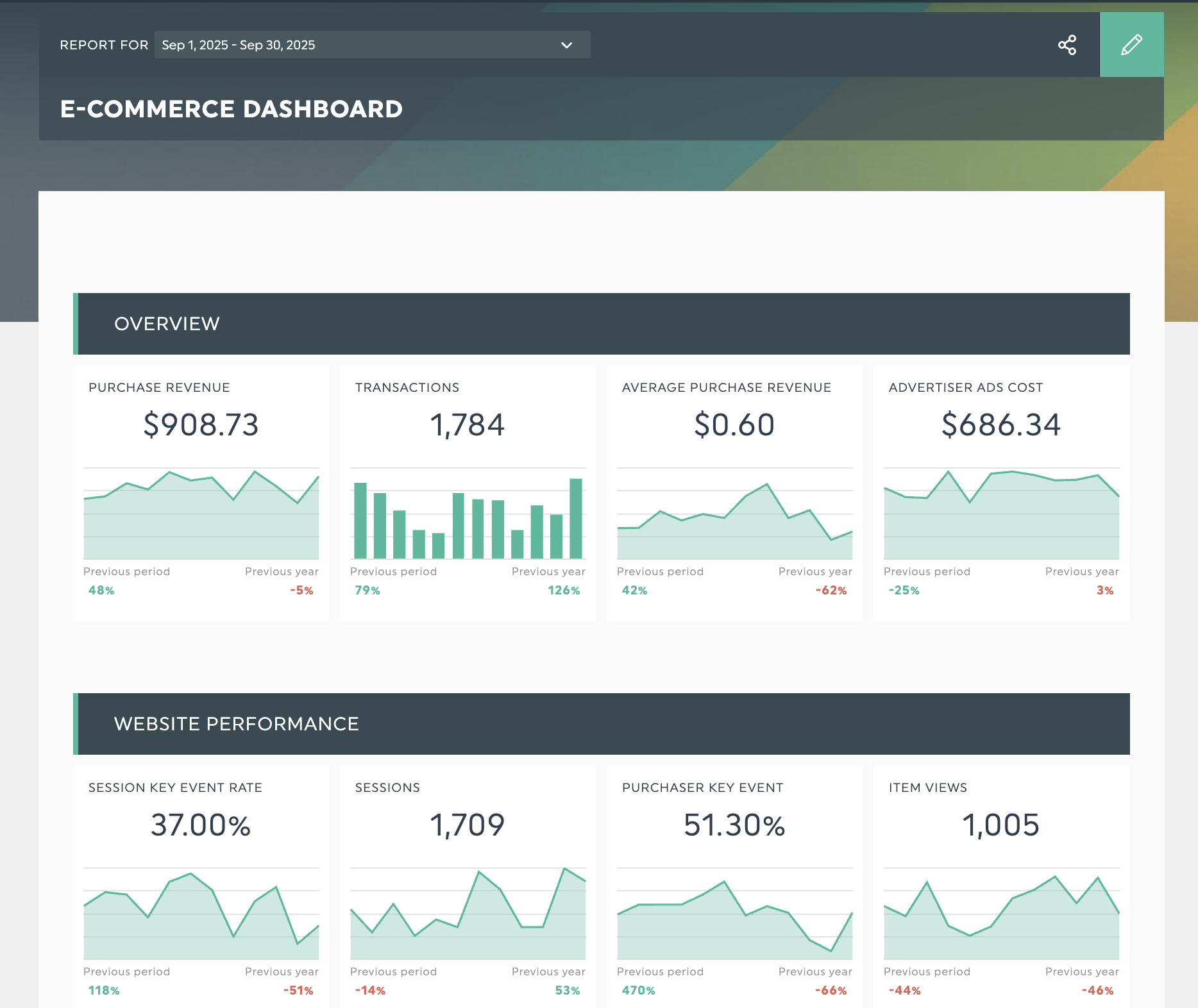 E-commerce reports combine discrete values like transaction counts with continuous data such as key event rates and average order values. By analyzing these numbers together, you can refine your client’s checkout process and identify top products to promote during seasonal sales.